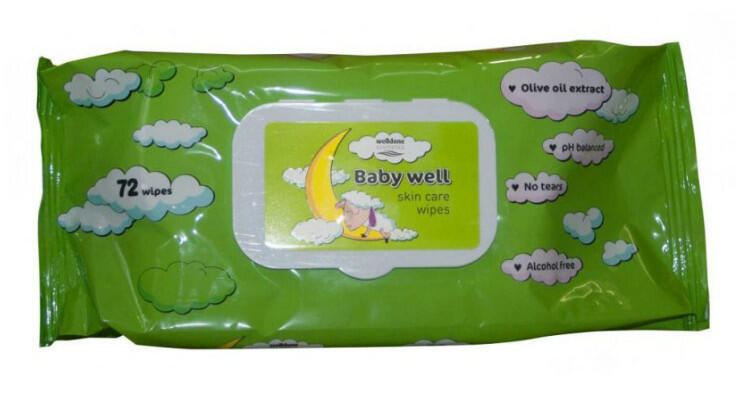 NEDVES TÖRLŐKENDŐ 72 LAP/CSOMAG BABY WELL OLIVA Baby Well nedves törlőkendő – Olive Oil Különleges anyagból készült bőrápoló törlőkendő, rendkívül puha és kellemes tapintást ad a baba bőrének. Tökéletesen tisztítja és felfrissíti a baba bőrét, megelőzve a pelenka okozta irritációtól. Alkoholt nem tartalmaz, mindennapos használatra alkalmas. 24 csomag / karton K