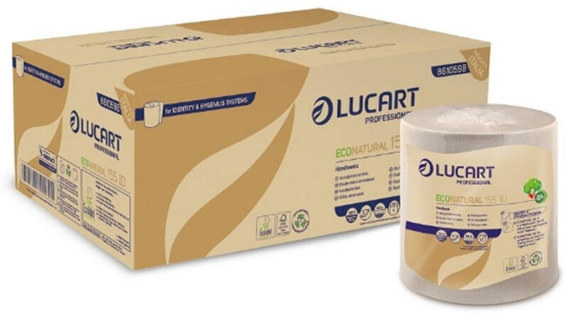KÉZTÖRLŐ 2 RÉTEGŰ TEKERCSES ÁTMÉRŐ: 19 CM 6 TEKERCS/KARTON 155 ID ECONATURALLUCART_861059E HAVANNA BARNA Lucart ECO Natural tekercses kéztörlő - 2 rétegű havanna barna - 155 m/tekercs - tekercses, autocut rendszer - környezetbarát, EU Ecolabel minősítés - italos dobozokból újrahasznosított alapanyag - száraz élelmiszerrel való érintkezésre alkalmas - 19 cm MINI tekercses