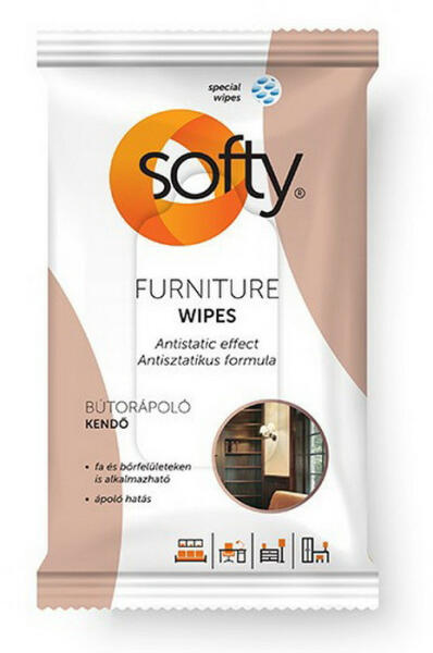 Nedves tisztító és bútorápoló kendő Softy 40 darabos Nedves tisztító és bútorápoló kendő 40 darabos A Softy bútorápoló törlőkendő eltávolítja az ujjlenyomatokat és ragacsos szennyeződéseket, valamint a port a bútorok felületéről, miközben fokozza azok természetes fényét. Lapméret: 17x18 cm