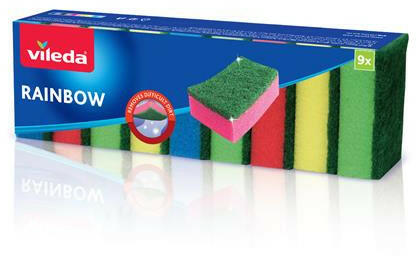 Mosogatószivacs, 9 db, VILEDA "Rainbow" Színes mosogatószivacsok, melyek jól magukba szívják a mosogítószereket, így könnyen felhabzik és jól tisztítja az edényeket, tányérokat, evőeszközöket. Gazdaságos kiszerelésben, 9 db/ csomag