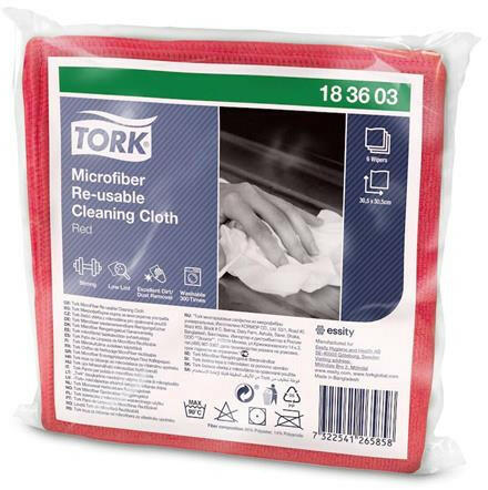 Tisztítókendő, mikroszálas, újra felhasználható, 1 rétegű, W8 rendszer, TORK, piros A Tork újra felhasználható mikroszálas tisztítókendő egy kiváló minőségű mikroszálas tisztítókendő. A szöszszegény törlőkendő mosható és újra felhasználható, kiváló tisztaságot biztosít a kemény felületeken. Kihajtott lap hossza: 30,5 cm Kihajtott lap szélessége: 30,5 cm H