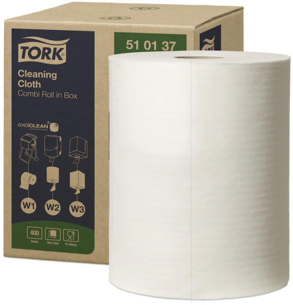 IPARI TÖRLŐ TEKERCSES TÖBBFUNKCIÓS KOMBI 152 M/400 LAP/TEKERCS 1 TEK/KARTON W1/W2/W3 TORK_510137 FEHÉR A többfunkciós Tork tisztítókendő puha, rugalmas, mégis erős. Az enyhébb szennyeződésekhez ideális, mert gyorsan magába szívja az olajat és a folyadékokat, így gyorsabban lehet végezni a tisztítással. A tisztítókendő a Tork hordozható vagy falra szerelhető adagolóiva