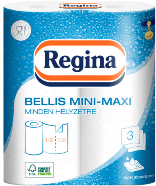 HÁZTARTÁSI PAPÍRTÖRLŐ KÉZTÖRLŐ 3 RÉTEGŰ 100 LAP/TEKERCS 2 TEKERCS/CSOMAG BELLIS MINI-MAXI FEHÉR Szuper nedvszívóképességű duplán perforált konyhai papírtörlő. A tökéletesített és megnövelt nedvszívóképességének köszönhetően szivacsként gyorsan és hatékonyan távolít el minden nedves foltot. 3 rétegű fehér 100% cellulóz alapanyagból készül lapszám: 100
