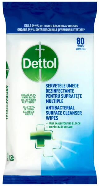 Termékleírás Termék információk A Dettol antibakteriális felülettisztitó törlőkendő elpusztítja a vizsgált baktériumok (MRSA) és vírusok (Influenza A H1N1, Rotavírus inaktiváló). Yeasticid. Egyéb információk Alkalmazási terület: felületfertőtlenítés Felhasználói kör: lakossági Terméktípus: PT2. , PT4. Törlőkendő. A Dettol márkanév és a Dettol logo az RB vá