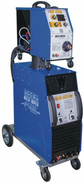 Robosztus, különtolós, vízhűtős ipari hegesztőgép, 10 méteres összekötő kábellel és 10 méteres testkábellel. A kis méretű és különálló huzaltoló miatt nem kell az egész berendezést a munkaterületen tartani, elég csak a kis huzaltolót mozgatni, aminek tömege kb. 25 kg (huzaldob nélkül). Ötvözi a hagyományos (transzformátoros) és a korszerű, elektronikus hegeszt