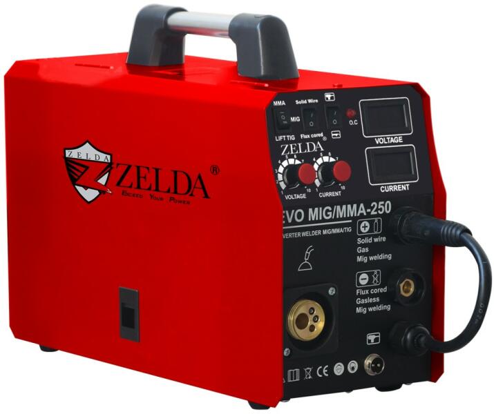 A ZELDA EVOMIG 250A-os inverteres hegesztőgép ideális megoldás a mindennapi elektródás hegesztési feladatokhoz. MEGBÍZHATÓ ÉS ROBUSZTUS A ZELDA hegesztőgépeket könnyű használhatóság, robusztusság és nagy teljesítmény jellemzi. Az intelligens burkolat-koncepció a legnehezebb használati körülmények mellett is abszolút megbízható működést biztosít. A termékek technol