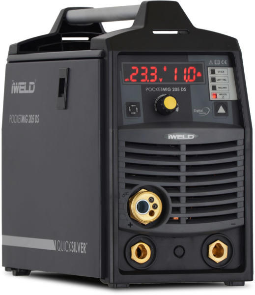 Gyártó: Iweld Modell: POCKETMIG 205 DIGITAL SYNERGIC Leírás: Nagy teljesítményű digitális inverteres technológia Szinergikus működés EMC zavarszűrés Kompakt méter VRD áramköri védelem: 22V Túlterhelés elleni védelem. 65C felett a hegesztőgép leáll. CO2 és kevertgázas működési mód 2T, 4T (hegesztési ütem beállítása) Hegesztés közben a kijelzőn a valós idejű h