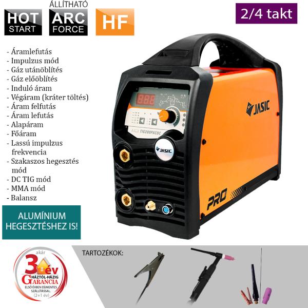 Kedvezőbb árat szeretne? Hívjon! +3670/226-3563 Jasic TIG 200P AC/DC E201 inverteres AWI hegesztőgép Ez egy 200A/230V IGBT inverteres hegesztőgép, AC/DC TIG HF ívgyújtással és impulzus állítási lehetőséggel. A digitális vezérlésű impulzusfrekvencia lehetővé teszi a csúcsáram, a bázisáram, az impulzusfrekvencia és az impulzus szélesség teljes paraméterezését, lehető