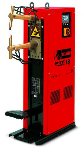 PTE 18 vízhűtéses állványos ponthegesztő készülék mozgó karokkal, mikroprocesszoros, digitális vezérléssel. Normál lábpedállal. A két fázisú, ipari felhasználásra tervezett, vízhűtéses PTE 18 állványos ponthegesztő mozgó karokkal, mikroprocesszoros, digitális vezérléssel és folyadékkristályos kijelzőpanellel rendelkezik, 3+3 mm lemezvastagságú elemek ponthegesz