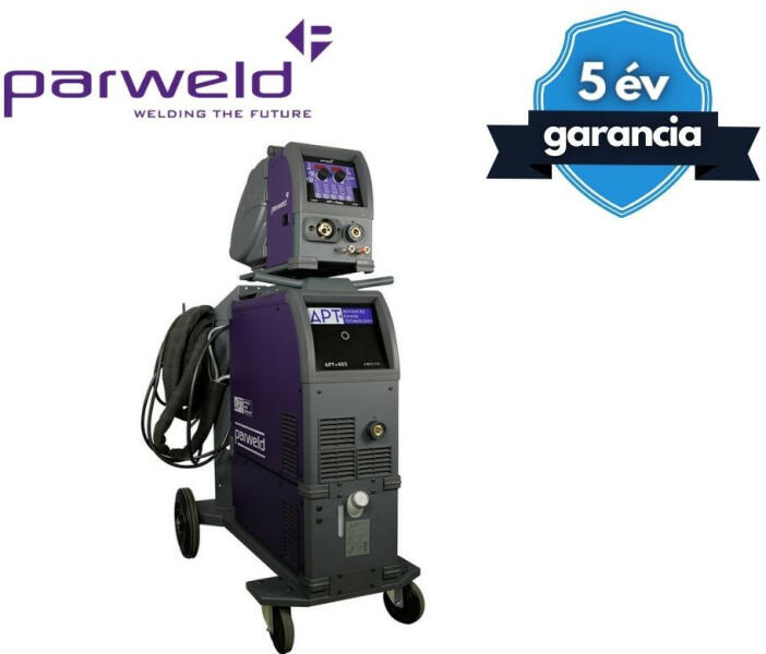 Parweld 400A-os impulzus / duplaimpulzusos különtolós MIG/MAG vízhűtéses hegesztőgép Leírás: 400A-os impulzus/duplaimpulzus MIG/MAG vízhűtéses inverteres szinergikus hegesztőgép, új vezérlő panellal (99 program), ECR5000-40ER 4 méteres hegesztőpisztollyal és 3 méteres testkábellel. Az APT+ sorozatú gépek az APT sorozat sikerére építenek. Az APT+ fokozatos változást je