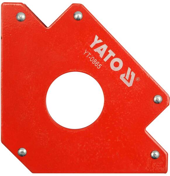 Yato hegesztõtámasz, mágneses Termékleírás Mágneses tartó acéllemezbõl és erõs ferritmágnesekbõl. Ez lehetõvé teszi az anyagok pontos hegesztését a következõ szögekben: 45 °, 90 ° és 135 °. Mágneses terhelhetõség kb. 34 kg. Felületi porfestett bevonat. Hegesztéshez, fúráshoz, festéshez, mindkét kezét igénylõ műveletekhez használható ideiglenes tartóeszköz.