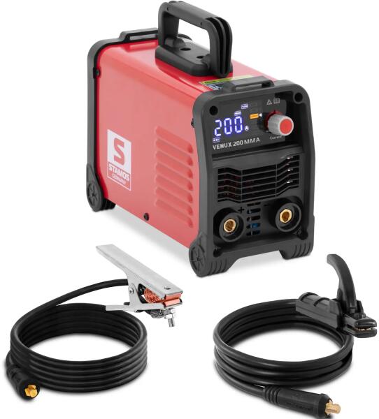 A Stamos Germany kompakt VENUX 200MMA elektródás hegesztőgépe a legmodernebb IGBT technológiának köszönhetően új szintre emeli a hegesztés élményét. A kijelzőn az intelligens kiválasztási rendszerrel minden beállítást kézben tarthat. Gázzal szeretne hegeszteni? Ezután válassza ki a TIG Liftarc üzemmódot, és csatlakoztasson egy megfelelő hegesztőpisztolyt (nem tartozik
