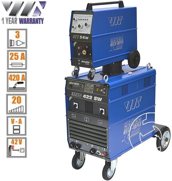 A Weldi-MIG 422 SW berendezés az egyik legnagyobb teljesítményű, háromfázisú hálózatról működő különtolós, vízhűtéses hegesztőgépünk. Széles körben alkalmazható a vékony-, közepes- és vastag anyagok hegesztési folyamatainál. Intelligens elektronikája egyaránt lehetőséget nyújt a 2- és 4- ütemű, szakaszos és ívponthegesztés üzemmódokra. Könnyű és nehéz