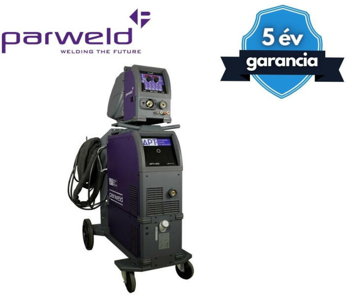Parweld 500A-os impulzus / duplaimpulzusos, különtolós, MIG/MAG vízhűtéses hegesztőgép Leírás: 500A-os impulzus/duplaimpulzus MIG/MAG vízhűtéses inverteres szinergikus hegesztőgép, új vezérlő panellal (99 program), 500A-os, 4 méteres hegesztőpisztollyal és 3 méteres testkábellel. Az APT+ sorozatú gépek az APT sorozat sikerére építenek. Az APT+ fokozatos változást jele