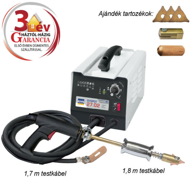 GYSPOT 27.02 SPOTTER KAROSSZÉRIÁS SPOTTER a GYSPOT 2700 tovább fejlesztett változata. Garancia: 3 év (1+1+1 év, ami regisztrációhoz kötött. ) A GYSPOT 27.02 2600 A maximális teljesítményével ideális termék horpadások kihúzására és kis vastagságú karosszériaelemek (motorháztető, ajtó- és tetőlemez stb. ) kiegyenesítésére. Ez egy többfunkciós termék, így alkalmas
