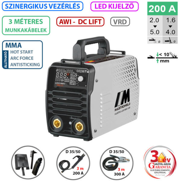 Folyamatos hegesztés 3,25-ös elektródával és szakipari hegesztés 4,0-es rutilos bevontelektródával! 3 méteres ajándék test és munkakábellel! Garancia: 3 év (1+1+1 év, ami regisztrációhoz kötött. ) -BEVONTELEKTRÓDÁS HEGESZTŐ INVERTER LIFT-TIG AWI FUNKCIÓVAL -INTUITÍV LED KIJELZŐ, SZINERGIKUS KIJELZÉS: A hegesztőáram változtatásával a készülék kijelzi a használhat
