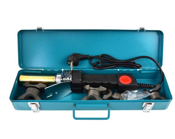 Polifúziós műanyagcső hegesztő 1000 WHegesztő PELD, homopolimér polipropilén (PP) és kopolimér (PPC, PPR) műanyagcsövekhez, 0 - 300 °C-os tartományú hőmérséklet szabályzóval felszerelve. A csatlakozókkal és a műanyagvágó ollóval együtt praktikus fém kofferben van tárolva. A csatlakozók teflon bevonatúak. Technikai paraméterek:Áramellátás 230VHőmérséklet szabá
