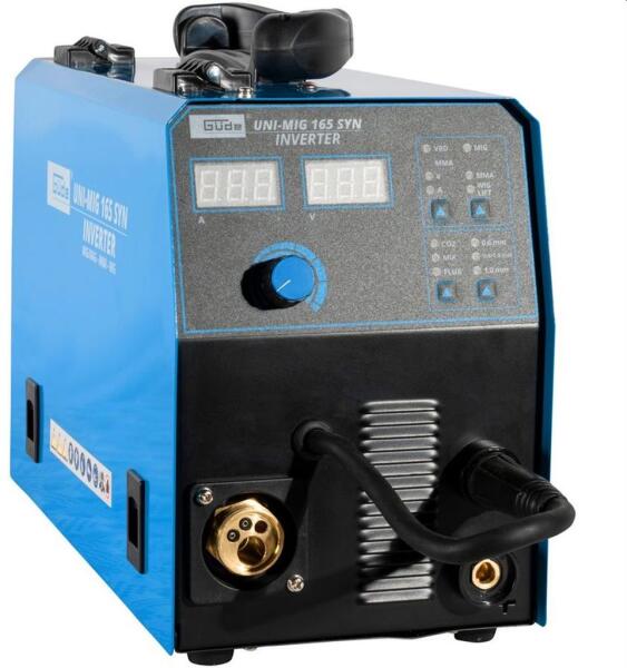 Jellemzők: Az Uni-Mig 165 SYN inverteres hegesztőgép a Güde termékcsalád egyik univerzális inverteres hegesztőgépe. Az Uni-Mig 165 SYN készülékkel mind a négy hegesztési eljárás lehetséges: MIG-MAG, MMA (elektródás hegesztés), Flux (töltőanyagos hegesztés) és WIG/TIG (opcionális). Az olyan bevált kiegészítő funkciók, mint az Anti-Stick (megakadályozza az elektróda m