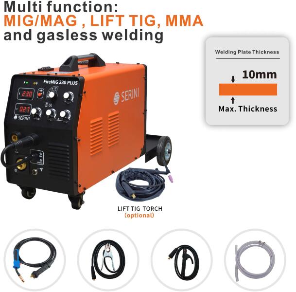 A FireMIG 230 PLUS IGBT inverteres hegesztőgépet sokoldalú teljesítményre tervezték különféle hegesztési technikákhoz, beleértve a MIG/MAG, Lift TIG, MMA és gázmentes hegesztést. A 220V/50Hz/1ph tápellátás a legmodernebb IGBT inverter technológiával rendelkezik a stabil, hatékony hegesztés érdekében. A szinergikus vezérlés egyszerűbbé teszi a gép kezelését azáltal,