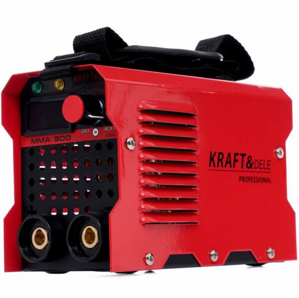 Kraft&Dele IGBT MMA inverteres hegesztőgép, kézi pajzzsal, KD1864, 20-300A A KD1864 hegesztőgép egy univerzális alkalmazású készülék, rozsdamentes acél, ötvözött acél, szénacél, réz és egyéb színesfémek hegesztésére szolgál. Különféle savas, bázikus és cellulóz elektródák használhatók. A nagy teljesítményű inverter tartós elektromos ívet biztosít. Nagy
