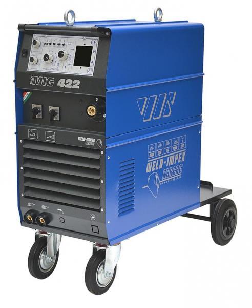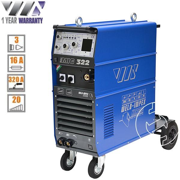 Weldi-MIG 322 - MIG hegesztőgép - CO hegesztőgép Védőgázas, fogyóelektródás MIG/MAG hegesztőgép. Nagy kijelzőjű V-A mérő, értéktartási funkcióval. 100% réz tekercselés. A Weldi-MIG 322 berendezés egy közepes teljesítményű, háromfázisú hálózatról működő hegesztőgép. Széles körben alkalmazható a vékony- és közepes vastagságú anyagok hegesztési folyamata