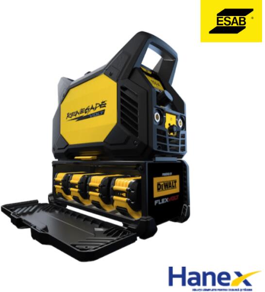 Az ESAB Renegade VOLT ES 200i hordozható, vezeték nélküli, akkumulátoros, elektródás (SMAW) és Live TIG (TIG) funkciós hegesztőberendezés, amely sokoldalúan használható akkumulátorról, váltóáramú hálózatról, valamint hibrid/AMP+ módban. Ez a vezeték nélküli hegesztőberendezés 6 Ah, 9 Ah és 12 Ah teljesítményű DeWALT FlexVOLT akkumulátorokkal működik. A Renegade