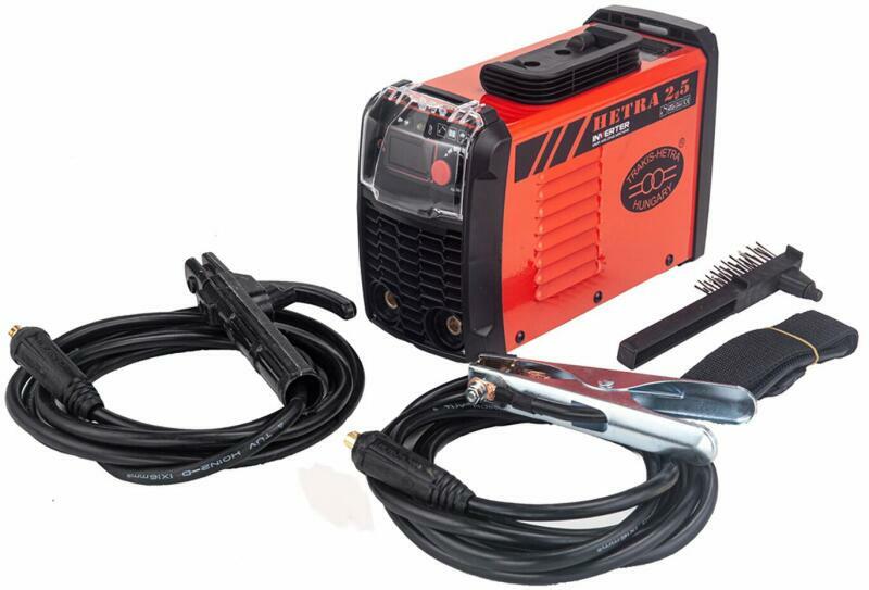 Hetra 2.5 inverteres hegesztő MMA 120A Hetra 2.5 inverteres hegesztő kisebb hegesztési munkák elvégzéséhez max. 2,5 mm bevont elektródával, 1-6 mm vastagságig. Hegesztőgép otthoni használatra. Egyenáramú kimenet a jó minőségű hegesztést -ARC-Force, -HOT-Start, -Anti-Stick nagy stabilitással biztosítja. Az inverteres hegesztő alkalmas MMA (pálcás) üzemben rutilos, bázikus