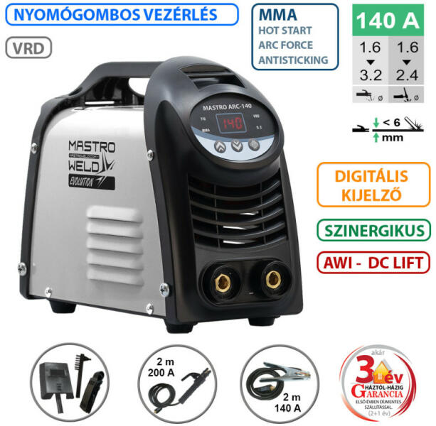 Az IGBT-140 típus 2023-as továbbfejlesztett változata. Garancia: 3 év (1+1+1 év, ami regisztrációhoz kötött. ) -BEVONTELEKTRÓDÁS HEGESZTŐ INVERTER LIFT-TIG AWI FUNKCIÓVAL -DIGITÁLIS kijelző -Hot-Start: Gyújtás könnyítés: Gyors gyújtóáram növelés az ív kialakulásáig. Így könnyebben begyújthatók a nehezebb heg. elektródák is. alacsony: vékony anyagok hegesztésére