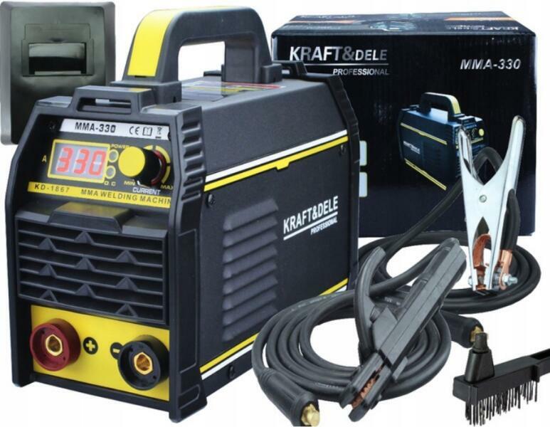 Kraft&Dele IGBT MMA, LCD inverteres hegesztőgép, kézi pajzzsal, KD1867, 20-330A A KD1867 hegesztőgép egy univerzális alkalmazású készülék, rozsdamentes acél, ötvözött acél, szénacél, réz és egyéb színesfémek hegesztésére szolgál. Különféle savas, bázikus és cellulóz elektródák használhatók. A nagy teljesítményű inverter tartós elektromos ívet biztosít.
