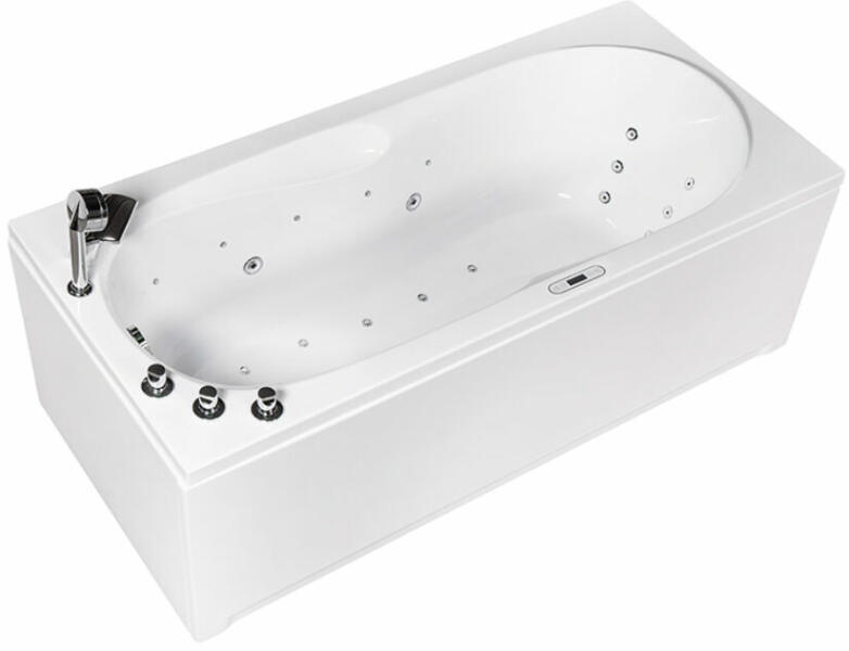 Előlapos egyenes kád kombinált (levegő+víz) masszázsrendszerrel, elektronikus vezérléssel|Méret: 190x90 cm|Kád anyaga: 100% Öntött Szaniterakril|Szín: fehér|Kád térfogata: 310 l|Víz-és levegőmasszázs rendszer:|levegőszivattyú|vízszivatty ú|szuper vízfúvóka|levegőfúvóka|a víz- és a levegőszivattyú elektronikai bekapcsolása|a levegőszivattyú fordulatszámának el
