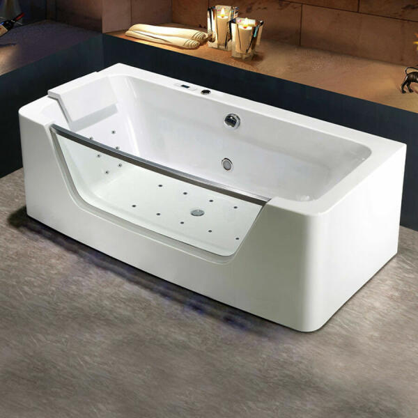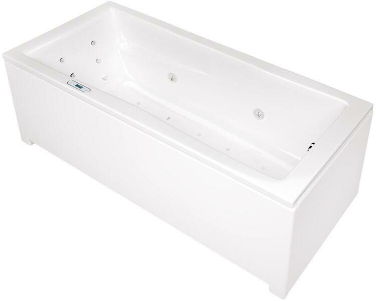 Előlapos fürdőkád vízmasszázs rendszerrel, pneumatikus vezérléssel|Méret: 190x120 cm|Szín: fehér|Kád anyaga: 100% Öntött Szaniterakril|Kád térfogata: 450 l|Az előlapot az ár tartalmazza. |Vízmasszázs rendszer:|vízszivattyú|vízfúvóka|pn eumatikus bekapcsolás|min-max levegőáramlás szabályozó|túlfolyó készlet|fu¨rdőkád lábazata