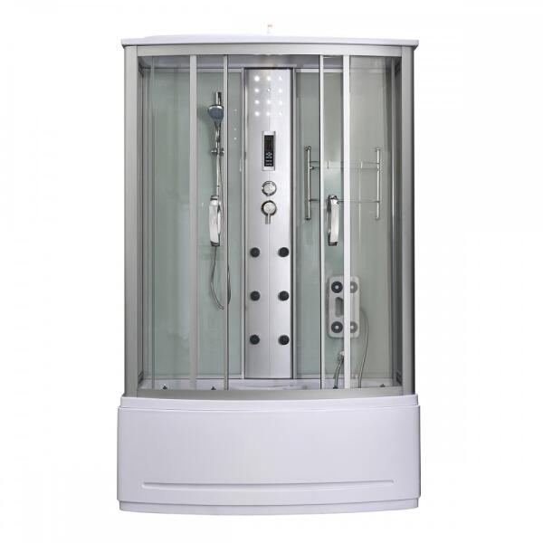 Emilia 85x135 cm hidromasszázs kádkabin elektronikával - White Profil matt króm Tálca szél. 135 cm Mérete 135x85x220 cm Tálca ma. 50 cm* Biztonságiüveg 5 mm Tálca mé. 85 cm Hátfal fehér Front üveg Víztiszta Fogantyú krómozott ABS Alsó üveg Víztiszta Középső panel PVC festett ezüs Zuhanytálca anyag ABS Csaptelep sárgaréz/cink Ajtózár mágneses Az Emilia 85x135 cm hidro