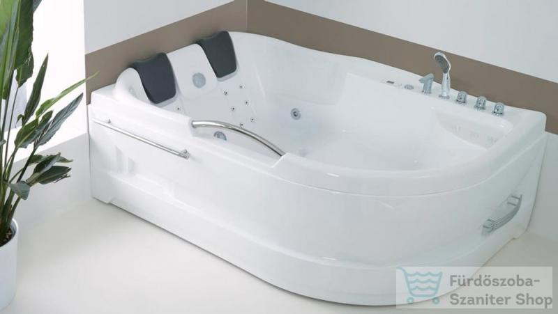 akril kádtest|keretes lábszerkezet|kád előlap|automata le- és túlfolyó + szifon|6 Mikro fúvókás V-concept hátmasszázs|4 Midi fúvókás oldalmasszázs rendszer|2 Midi fúvókás lábmasszázs rendszer|pneumatikus irányító gomb|AJÁNDÉK kádperem rögzítő szett|jobb és baloldali kivite|Hidromasszázs kád: aszimmetrikus sarok kád|Hidromasszázs kád mérete: 141-160 cm, szimmetr