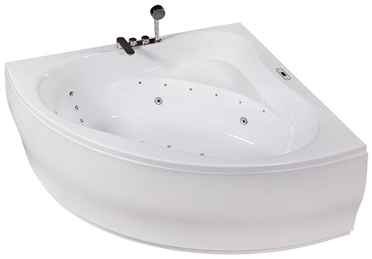Aszimmetrikus sarokkád előlappal, vízmasszázs rendszerrel, pneumatikus vezérléssel|Méret: 170x110 cm|Jobbos kivitel|Kád anyaga: 100% Öntött Szaniterakril|Szín: fehér|Kád térfogata: 305 l|Vízmasszázs rendszer:|vízszivattyú|vízfúvóka|pn eumatikus bekapcsolás|min-max levegőáramlás szabályozó|túlfolyó készlet|fu¨rdőkád lábazata