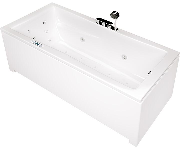 Azalia kád (170x105) Az ár tartalmazza a kádat, kádlábat, masszázsrendszert, valamint az automata le-és túlfolyót. Felszereltsége: Wellness Premium 24 fúvókás elektronikus hidromasszázs: - 4 db EasyClean® Slim önürítős vízfúvóka - 4 db Slim mini fúvóka a háthoz - 4 db Slim mini fúvóka a talphoz - 12 db Slim fém levegőfúvóka a kádtest aljában - Zajszegény, nagy tel