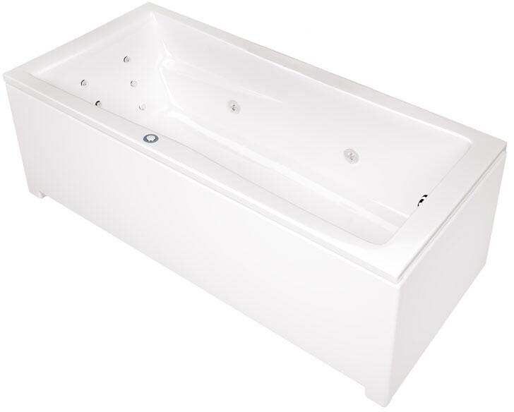 Előlapos fürdőkád kombinált (levegő+víz) masszázsrendszerrel, elektronikus vezérléssel|Méret: 170x75 cm|Szín: fehér|Kád anyaga: 100% Öntött Szaniterakril|Az ár tartalmazza a előlapot és a kádvázat is. |Víz-és levegőmasszázs rendszer:|levegőszivattyú|vízszivatty ú|szuper vízfúvóka|levegőfúvóka|a víz- és a levegőszivattyú elektronikai bekapcsolása|a levegőszi