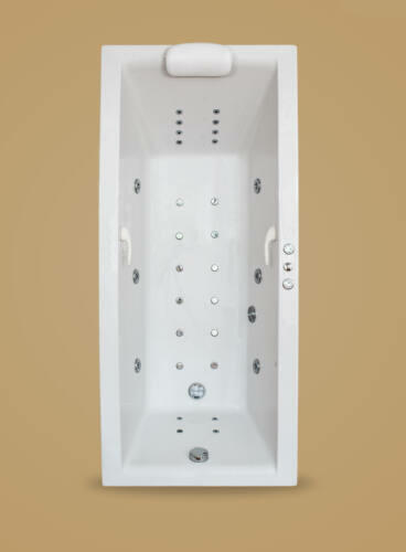 Klasszikus, egyenes hidromasszázs kád, közkedvelt forma. Mérete: 160x75 cm. A Jasmin hidromasszázs kád letisztult formája teszi tökéletesen beilleszthetővé szinte bármelyik fürdőszobába. Modern, szögletes formája miatt nagyon kedvelt forma, masszázsrendszerének köszönhetően pedig tökéletes egyszemélyes wellness élményt nyújt otthonában. A Jasmin masszázskád 3 méretb
