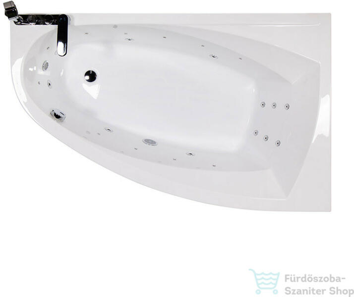 Matana E-Ma x érintőgombos vezérlésű hidromasszázs kád Egyedi kialakítású asszimetrikus sarokkád. Letisztult formája a legigényesebb fürdőszobában is megállja a helyét. Érintőgombos vezérlésű 22 fúvókás masszázsrendszer, vízhőfoktartó renszere és exkluzív 11 ledes színterápiás világítással kényzteti használóját a fáradt mindennapokban. Pezsgőfürdő moto