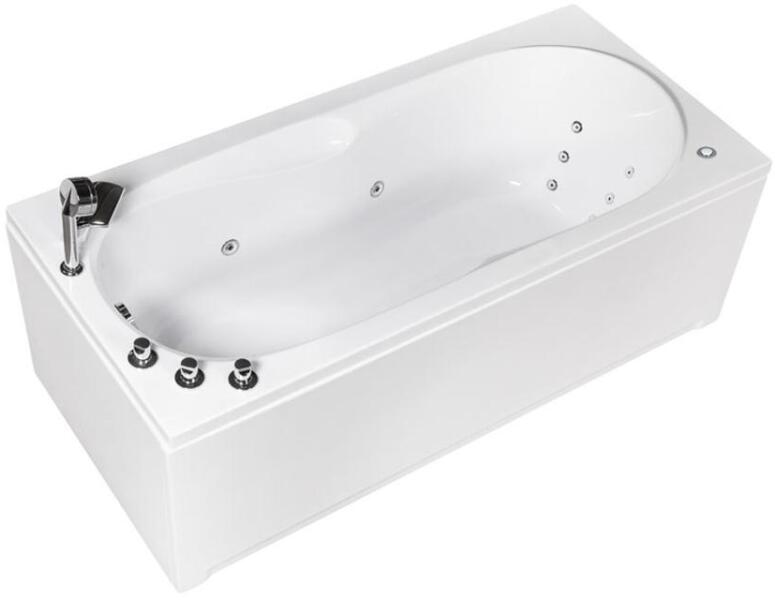 Előlapos egyenes kád kombinált (levegő+víz) masszázsrendszerrel, mikro fúvókákkal, elektronikus vezérléssel|Méret: 180x80 cm|Kád anyaga: 100% Öntött Szaniterakril|Szín: fehér|Kád térfogata: 285 l|Víz-és levegőmasszázs rendszer:|levegőszivattyú|vízszivatty ú|szuper vízfúvóka|levegőfúvóka|a víz- és a levegőszivattyú elektronikai bekapcsolása|a levegőszivattyú