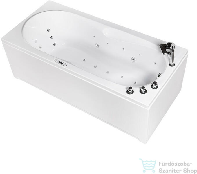 Előlapos fürdőkád kombinált (levegő+víz) masszázsrendszerrel, elektronikus vezérléssel|Méret: 180x80 cm|Szín: fehér|Kád anyaga: 100% Öntött Szaniterakril|Az ár tartalmazza a előlapot és a kádvázat is. |Víz-és levegőmasszázs rendszer:|levegőszivattyú|vízszivatty ú|szuper vízfúvóka|levegőfúvóka|a víz- és a levegőszivattyú elektronikai bekapcsolása|a levegőszi