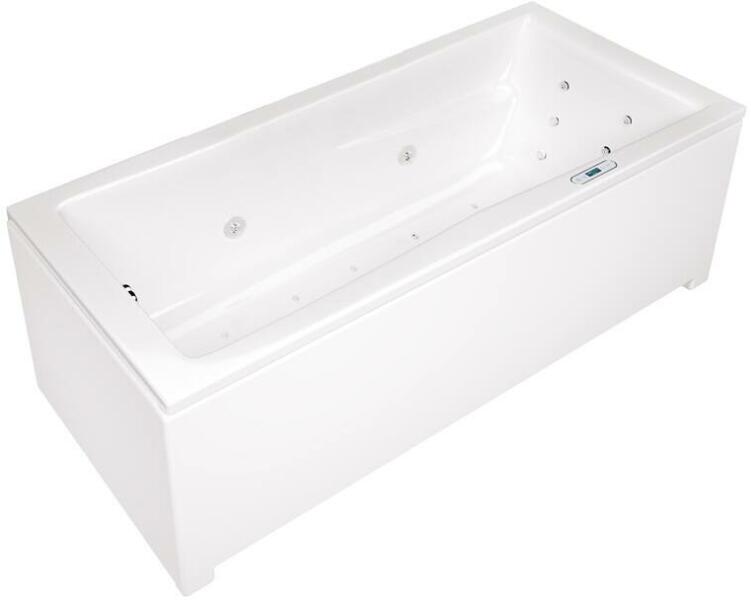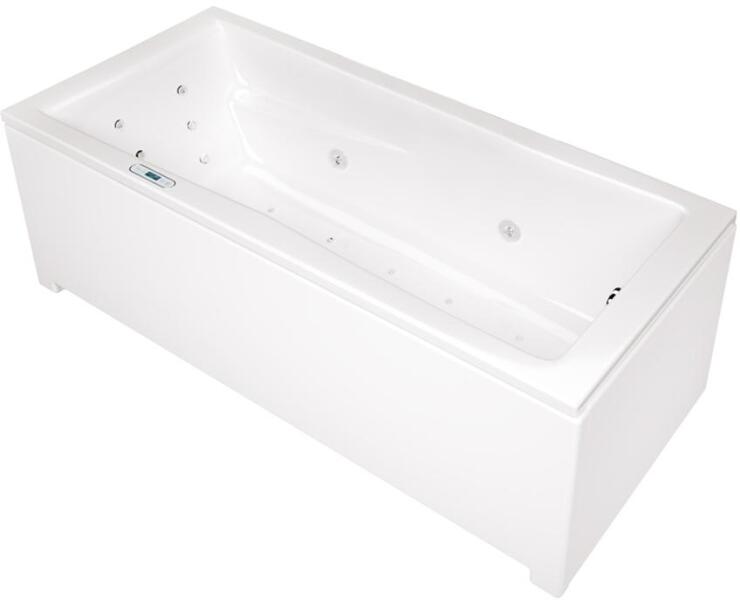 Előlapos egyenes kád kombinált (levegő+víz) masszázsrendszerrel, mikro fúvókákkal, elektronikus vezérléssel|Méret: 170x75 cm|Kád anyaga: 100% Öntött Szaniterakril|Szín: fehér|Kád térfogata: 235 l|Víz-és levegőmasszázs rendszer:|levegőszivattyú|vízszivatty ú|szuper vízfúvóka|levegőfúvóka|a víz- és a levegőszivattyú elektronikai bekapcsolása|a levegőszivattyú