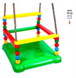 Gyerek klasszikus stílusú hinta, minőségi műanyagból készített. A hinta formája alkalmazkodik a gyermekhez, az erős kötelek pedig biztosítják az ellenállást és a tartósságot. Maximális terhelhetőség: 50 kg. Mérete: 42x17 cm.