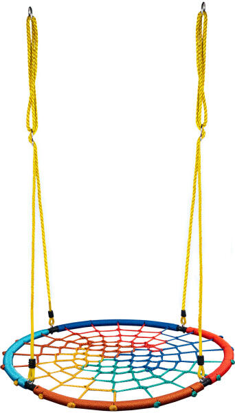 A fészekhintája nem csak kiváló szórakozás, de egyúttal vidám hangulatot teremt az udvaron is. Elsősorban otthoni felhasználásra ajánlott. A 95 cm átmérőjű gyűrűn akár több gyermek is elfér, így testvérek számára is kiváló választás. Ülve vagy fekve használható, így akár pihenni is lehet rajta. Ülőfelülete vízlepergető anyagból készült, állítható hossz