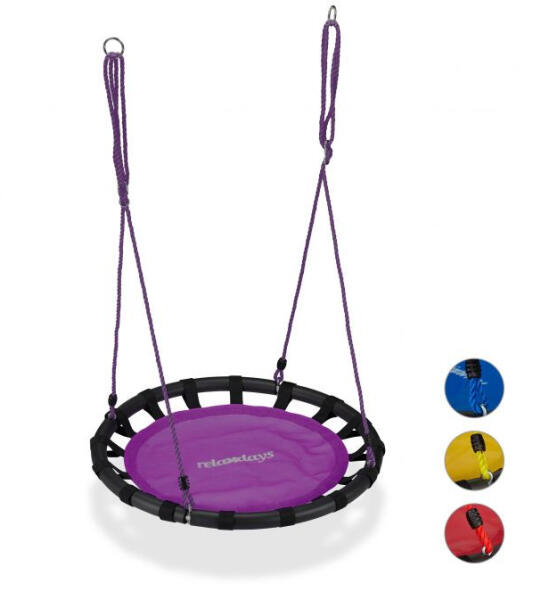 Fészekhinta 80cm lila színben Kerek hinta gyerekeknek és felnőtteknek Vicces szórakozás kicsiknek és nagyoknak Szükség esetén állítható magasságú Könnyű összeszerelés erős kötelekkel Kültéri használatra A kényelmes kikapcsolódáshoz Fészekhinta mérete és anyaga Hinta méretei kötelek nélkül H x M: 5 x 80 cm Állítható teljes magasság: 80 - 150 cm Ülésátmérő: