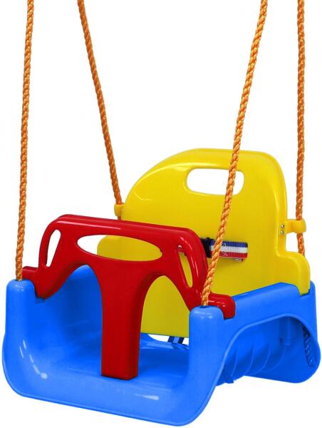 A kék muanyagból készül gyerek hinta praktikus, könnyen felhelyezheto szinte bárhová az udvaron. A hinta nem rendelkezik háttámlával és elülso védo korláttal sem, ezért szükséges figyelni a hintázó gyerekre. Teherbírása 70 kg, méretei 43 x 17 x 8,5 cm. A hinta mindkét oldalán kötelekkel van rögzítve, melyeknek hossza 2 m, átméroje 10 mm. Kelloen rögzítse a kívánt h