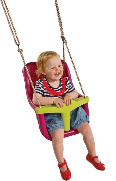 Praktikus bébi bölcsőhinta a legkisebbeknek! Magánkertekbe, családi házakba ajánlott kényelmes és biztonságos bébi hinta, hogy a kisgyermekek is megtapasztalhassák a hintázás élményét. A nagy, kényelmes kialakítású bölcsőhinta fröccsöntött műanyagból készül és csatos biztonsági övvel rendelkezik. A türkizkék bébi ülés türkiz hegesztésekkel és sárga, UV sug