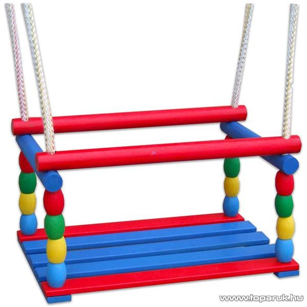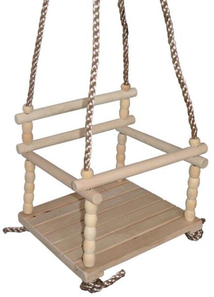 Fából készült gyerekhinta. Termék részletek: ez egy klasszikus fából készült járóka, köteleken csúszó részekkel ülés mérete 30 cm széles és 29,5 cm hosszú a háttámla magassága az üléstől 26 cm a kötél hosszát az üléstől a gyűrű felakasztásának helyéig mérik - 140 cm terhelhetőség 40 kg-ig a termék 3 év alatti gyermekek számára nem alkalmas Csomag tarta