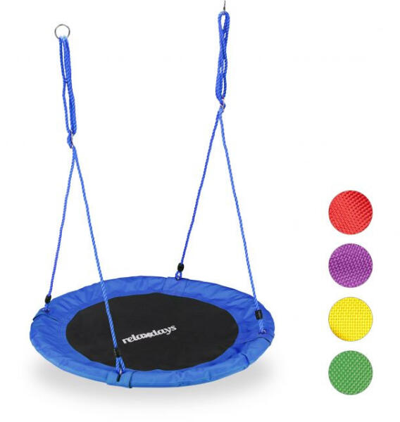 Fészekhinta 90 cm kék színben A fészekhinta kültéren és beltéren is használható Nyugodt ringatás gyerekeknek és felnőtteknek egyaránt A kötelek hossza állítható Kárpitozott váz és kényelmes ülés Fészekhinta mérete és anyaga Méret H x D: 5 x 90 cm Állítható magasságú kötelek: kb. 85 - 150 cm Súlya: 2,5 kg Max. 100 kg terhelés Anyaga szövet, PE, PP, acél és hab