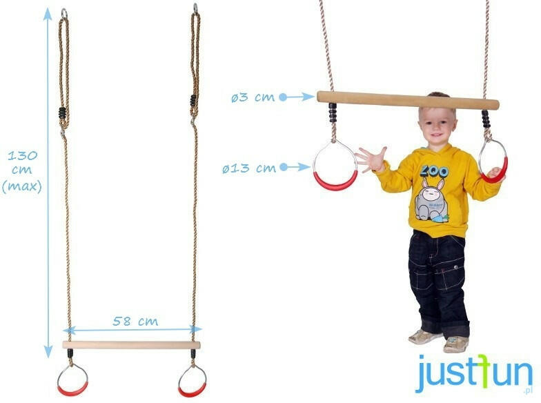 JustFun trapézhinta fém gyűrűvel, almazöld színben Trapézhinta - az igazi kalandvágyó lurkóknak! Fa trapézhinta fém tornagyűrűkkel, vagány almazöld színben! Jellemzők: Fa trapéz fém kerek tornagyűrűk műanyag fogantyúk állítható kötélhossz könnyű összeszerelés horganyzott acélból készült fém szerkezeti elemek ellenáll a változó időjárási viszonyoknak