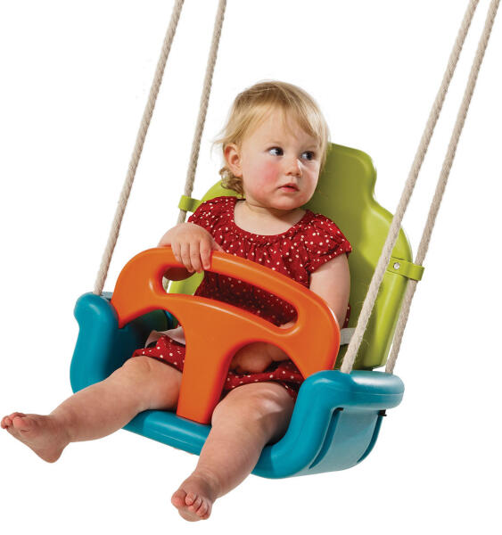 Bölcsőhinta minden gyerek korosztálynak! Ez az egyedi tervezésű hinta együtt nő fel a gyerekkel. A kicsik bölcsőhintaként, a kicsit nagyobbak háttámlás laphintaként, a nagyobb gyerekek pedig laphintaként használhatják. A hinta három, fröccsöntött műanyag részből áll. A termék több variációs színben kapható. A gyűrűk és a kampók horganyzott acélból, a hegesztés